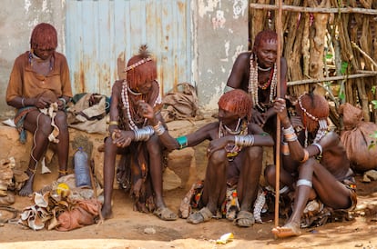 Cuatro de los niños acogidos en este centro desde hace años, Gogo, Rony, James y Moisés, se acercan sonrientes. Ya tienen casi 18 años y pertenecen a la etnia hamer. Desde hace algún tiempo se permiten hacer planes con un futuro que un día les quisieron negar: Rony dice que le gustaría ser mecánico, James diseñador gráfico, Moisés médico… Ninguno recuerda mucho de su vida anterior, pero saben qué significa ser mingi y también son conscientes de que estuvieron a punto de morir porque el primer diente les creció en la parte de arriba de la boca. Rony subraya que prefiere vivir en la ciudad. “Aquí tengo amigos, ropa, libros, voy al colegio… No volvería allí”, asegura, refiriéndose a su poblado. James es el único que ha conocido a sus padres y explica que la experiencia fue extraña, pero que han mantenido el contacto desde entonces. “Vienen algunos veranos a verme”, dice, antes de confesar que nunca le ha preguntado a su madre qué pasó ni ha querido saber por qué permitió que intentaran asesinarle. “No estoy enfadado, no es culpa suya. Está bien así”, garantiza.