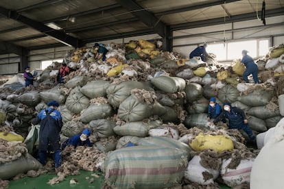 En el almacén de Khanbogd —una de las principales fábricas de cachemir de Mongolia—, los trabajadores clasifican grandes sacos de fibra recién llegada de distintos distritos. Fundada en los años 2000, Khanbogd trabaja con cooperativas y proveedores locales, y abastece a las cadenas de producción de algunas de las marcas europeas más prestigiosas: Lanificio Colombo, Burberry, Louis Vuitton, Hermès, Dior, Gucci, Prada, Chanel, Max Mara o Bottega Veneta. La empresa también es miembro de la SFA. En respuesta a las solicitudes de EL PAÍS, Gucci, Prada y Brunello Cucinelli afirmaron no ser ahora miembros de la SFA.