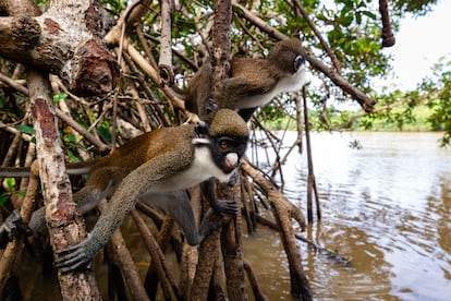 La región Bas-Sassandra, una de las más turísticas de Costa de Marfil, ha sido víctima de la deforestación masiva y de la acuciante pérdida de biodiversidad que ha sufrido el país desde su independencia en 1960. “Antes aquí había chimpancés, panteras, antílopes y búfalos, pero hoy solo nos quedan los monos. Ahora solo comemos pescado, cangrejo y cigala”, asegura el guía. Los jefes tradicionales de la aldea Nero Mer de la etnia Krou o Klayou, ubicada en las afueras de la ciudad costera de Grand-Béreby, tomaron una decisión sin precedentes en los años noventa: prohibir la caza furtiva y el consumo de mono y dedicarse a preservar casi el único animal que les quedaba.