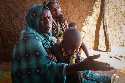 A Ashaa Abdalla Tourshin se le nota en la voz el duelo. Y en la mirada perdida de unos ojos cansados con atisbos de cataratas. En su regazo, un niño de dos años, su nieto Moutassim. Logró salir hace un mes de la ciudad sudanesa de El Fasher, reciente escenario de una de las peores masacres registradas desde que hace más de dos años estallara una cruenta guerra civil en el país. Abdalla escapó con el crío en brazos y han sido acogidos en la precaria vivienda de lonas y cañas de su hija Hadjara en el campo de refugiados de Farchana, en el este de Chad.