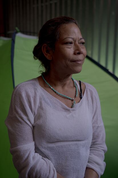 Bárbara Rodríguez limpia un espacio del albergue mientras explica que es del Estado mexicano de Guerrero, pero vivió 20 años en Estados Unidos, donde siguen sus cinco hijos. La mujer cuenta que la trajeron a Tijuana engañada, para que lograra desengancharse de la marihuana, pero terminó viviendo en la calle. Su sueño es volver con sus hijos, pero por ahora no lo ve posible y se ha instalado en el albergue con el fin de tener un techo mientras logra un trabajo. “Esperemos que el Gobierno de Estados Unidos cambie, que no olvide que gracias a muchos mexicanos se saca adelante el trabajo del campo, de las fábricas...”, dice Rodríguez.