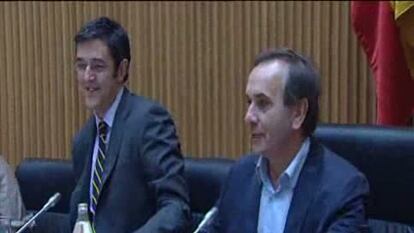 Tras hablar con los periodistas, el portavoz ha accedido a la sala Ernest Lluch del Congreso, donde los diputados del PSOE le han recibido con un largo aplauso y muchas expresiones de cariño.