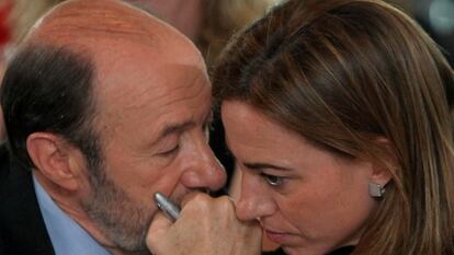 - Chacón: "Alfredo, tienes todos nuestros mimitos y los míos en particular". "Desde el norte al sur, de este a oeste, todos los socialistas estamos trabajando para que gane el mejor, Alfredo". "Lo que está haciendo el PP es una estafa democrática".
