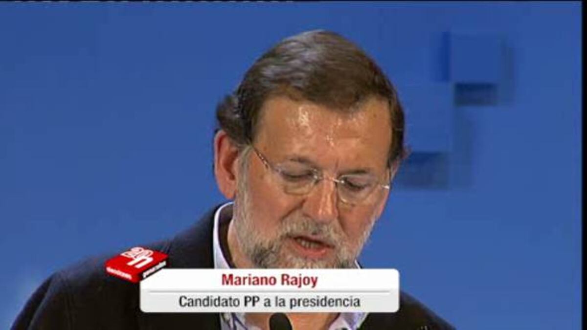 "Os pido el voto de la esperanza, no el voto del miedo", aseguró Rajoy entre gritos de "¡Presidente, presidente¡" y continuas interrupciones de sus simpatizantes enfervorizados.