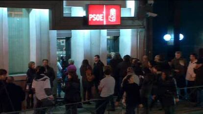 Había militantes enfadados: “Se han hecho las cosas muy mal, se han hecho políticas que no eran de izquierdas”, se quejaba uno que acudía por primera vez a la sede del partido en una noche electoral. Y otros ya pedían cambios: “Me gustaría que apostáramos por una cara nueva, como Carme Chacón. Yo creo que ella nos puede devolver la ilusión”. Otra militante, en cambio, opinaba que Rubalcaba es “el mejor” para liderar el partido. “El resultado no tiene nada que ver con él. Esto estaba ya decidido cuando él llegó”.