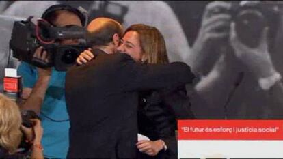 Alfredo Pérez Rubalcaba y Carme Chacón, en un acto de la campaña electoral en Barcelona. / marcel.lí sàenz
