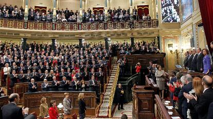 El Monarca se hace eco de los incumplimientos en la renovación de órganos constitucionales Don Juan Carlos recibe el aplauso más largo que se recuerda en los últimos años