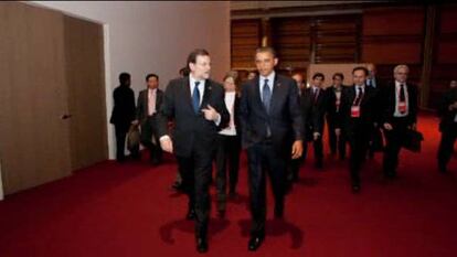 La ocasión propicia podría ser septiembre, cuando Rajoy prevé acudir a la asamblea de la ONU El presidente español y el estadounidense se saludan en Seúl