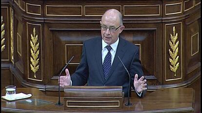 El titular de Hacienda ha asegurado que “no es verdad” que las políticas de ajuste que han emprendido puedan perjudicar la recuperación y ha garantizado que cumplirá con el objetivo del 5,3% de déficit que ha impuesto Bruselas, en contra de lo que sostienen los principales analistas. Por eso, ha señalado: “Proponemos reducciones de gasto. Vamos a llamar al pan pan y al vino vino”.