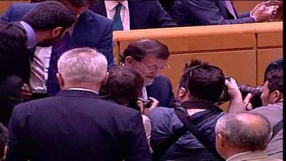 El presidente de la Cámara alta reprende al senador que quiso dar un casco a Rajoy