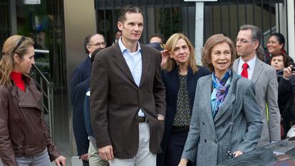 El Rey recibió el domingo la visita de toda la familia real, incluido su yerno, Iñaki Urdangarin, imputado por malversación, fraude a la Administración y falsedad en el llamado caso Nóos. Los duques de Palma llegaron a las 15.30 horas al hospital con su hijo mayor, Juan Valentín, la Reina y la infanta Elena. Quince minutos más tarde lo hacían los Príncipes con sus hijas, las infantas Leonor y Sofía. Todos coincidieron en la habitación de don Juan Carlos, Hacía más de un año que no se les veía a todos juntos. La última vez fue el 12 de octubre de 2011, día de la Fiesta Nacional.