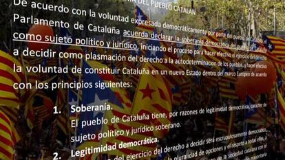 Convergència i Unió y Esquerra han aceptado suavizar el borrador de la declaración soberanista, que se debatirá el día 23 en el Parlament, y suprimir que el objetivo del referéndum es conseguir que Cataluña se convierta en un futuro en un nuevo Estado de la Unión Europea. La idea es eliminar un fin tan explícito y aludir a que ese fue el lema de la manifestación gigantesca de la última Diada. Y algo más: el título de la resolución incorpora también ahora el derecho a decidir. Con la modificación, los dos socios de gobierno (71 diputados) han lanzado un guiño a Iniciativa (ICV-EUiA) para granjearse el apoyo de sus 13 diputados. Los ecosocialistas son partidarios de la consulta pero rechazaron que el texto excluyera a quienes desean seguir apostando por mantener la vinculación con España. La duda es si el gesto de CiU y ERC seducirá a los socialistas.