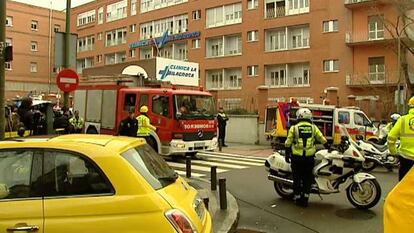 Según ha explicado Cifuentes a EL PAÍS, se ha producido un pequeño incendio por causas aún no esclarecidas en un cuarto de la planta baja que ha provocado la explosión de dos bombonas de oxígeno de 50 litros cada una. Esto ha producido un denso humo negro y la acumulación de gases, que en la tercera planta han provocado la rotura del marco de la ventana y el cristal. Ambos han caído a un patio interior de la clínica.
