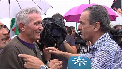 Mario Conde se encara con jornaleros del SAT que iban a ocupar su finca sevillana