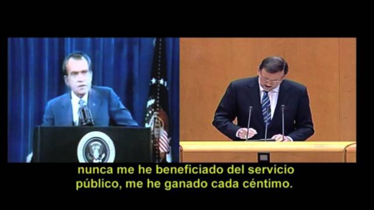 El PSOE lanza un vídeo en el que compara las declaraciones del pasado jueves del presidente del Gobierno, Mariano Rajoy, por el caso Bárcenas, con las del presidente estadounidense Richard Nixon, cuando estalló el caso de espionaje Watergate. "El norteamericano tuvo que admitir la verdad, asumir su responsabilidad política y abandonar su puesto ante los gravísimos hechos tras someterse a un proceso de impeachment en la Cámara de Representantes", recuerdan los socialistas.