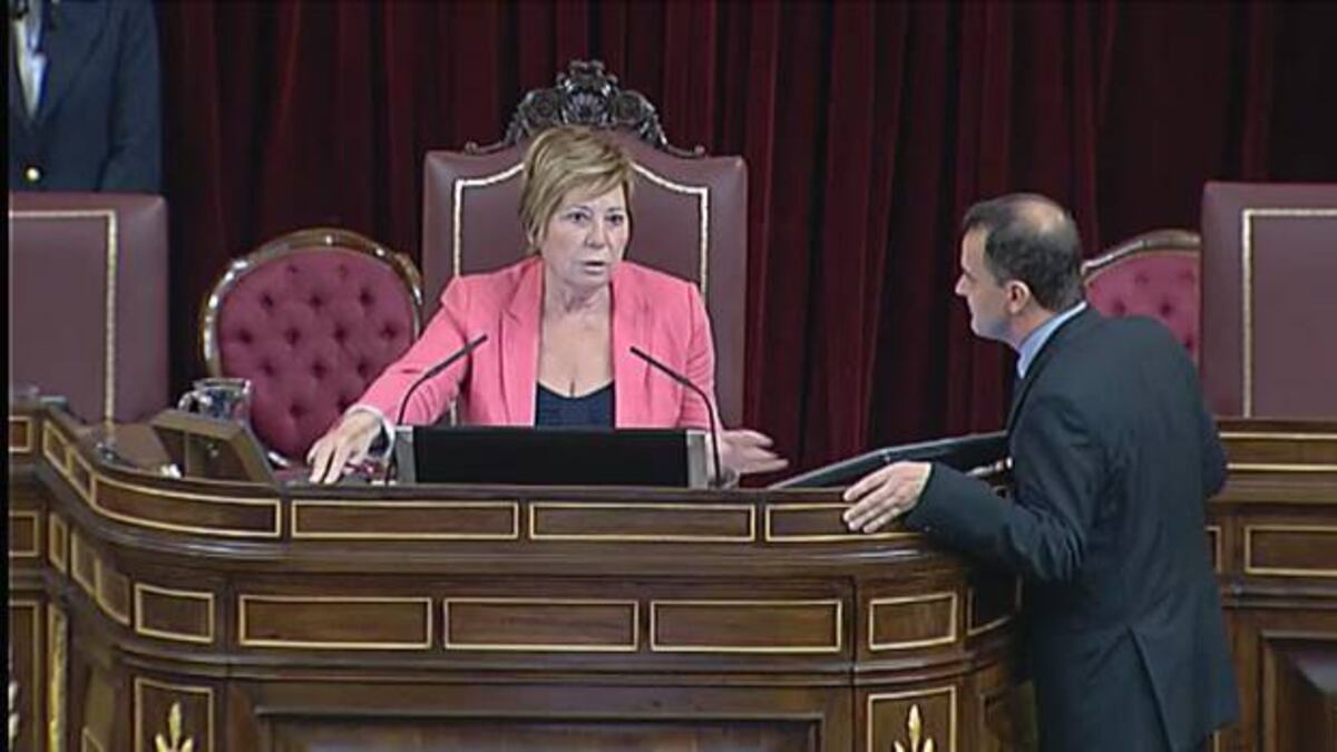 En inglés y sobre un asunto ajeno al que se debatía en el pleno del Congreso de los Diputados. Esta ha sido la razón por la que la vicepresidenta primera del Congreso, Celia Villalobos, que este martes presidía la sesión plenaria por ausencia de Jesús Posada, de viaje oficial en Panamá, ha expulsado de la tribuna de oradores al portavoz de ERC, Alfred Bosch. Este portavoz, que vive por segunda vez esta situación en esta legislatura, se ha salido por completo de la materia de debate planteada, en concreto, una proposición de ley de UPyD sobre medidas para la regeneración democrática y contra la corrupción. Bosch ha decidido hacerse eco de las protestas que se producen en Baleares en los últimos días por diversos colectivos contrarios a implantar en las islas el trilingüismo: castellano, catalán e inglés.