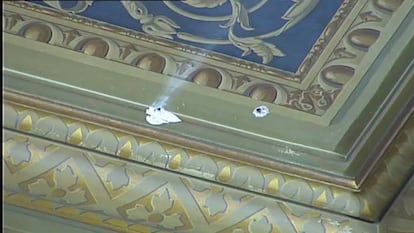 Las ocho marcas no conocidas hasta ahora están ubicadas en dos plafones planos del techo, en la zona de bóveda y en la faja sobre la cornisa de focos. Ese informe, examinado este martes por la Mesa del Congreso, certifica también que han desaparecido diez de las 37 marcas catalogadas en 1981. Desde ese año, reconoce la Cámara baja, “se han realizado algunas obras en el hemiciclo que podrían haber afectado a las señales de los disparos”. Los trabajos más importantes se llevaron a cabo en 1988, pero no fue hasta 1999 cuando el arquitecto conservador de esta institución documentó solo 33 marcas. Ya se habían perdido, por tanto, cuatro de las originales; este año desaparecieron cinco, y una rejilla con impacto de bala será expuesta en uno de los pasillos.