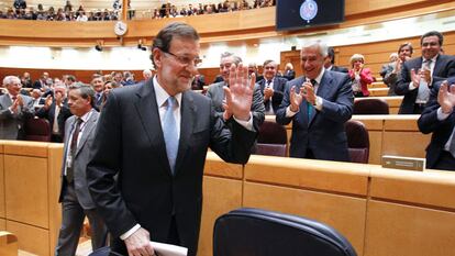 Rajoy, en un discurso que parecía más pensado para su propio partido y su entorno mediático, que le presionan para que sea tajante con Cataluña, fue claro: “Si hay propuestas, estaré abierto al diálogo, pero hay algunos temas sobre los que a mí no se me puede pedir que ceda. El artículo 1 y 2 de la Constitución, España y la soberanía nacional para mí no son negociables. Y para usted estoy seguro de que tampoco”, le espetó en el Senado al socialista José Montilla, anterior president de la Generalitat. Rajoy fue muy aplaudido por la bancada popular.