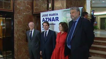 José María Aznar ha alardeado esta tarde del trabajo de sus Gobiernos en un acto sin ministros del actual Ejecutivo ni miembros de la cúpula del PP. El expresidente ha agradecido la presencia de “la colección” de exministros de sus Gobiernos, entre ellos, Ángel Acebes, Esperanza Aguirre, Eduardo Zaplana, Jaime Mayor Oreja, Isabel Tocino, José María Michavila y Josep Piqué, que ha prsentado el acto junto al ex secretario general de Comisiones Obreras José María Fidalgo. "Si se me permite la expresión, esos eran unos equipazos que funcionaron muy bien, muy armónicos", ha destacado.