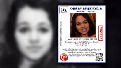 La Guardia Civil ha reanudado la búsqueda por la isla de Mallorca de la joven Malén Zoe Ortiz, de 15 años, que desapareció el día 2 de diciembre en Calvià, cuando salía del instituto e iba a coger el autobús para ir a casa de su novio para comer, a donde no llegó. El instituto armado que, aún no descarta ninguna hipótesis, asegura que cada vez cobra más fuerza la teoría de la "desaparición forzosa", motivo por el que centra sus pesquisas en la zona boscosa de Son Ferrer, el golf y el vivero del municipio, las zonas más próximas al lugar en el que la menor fue vista por última vez.