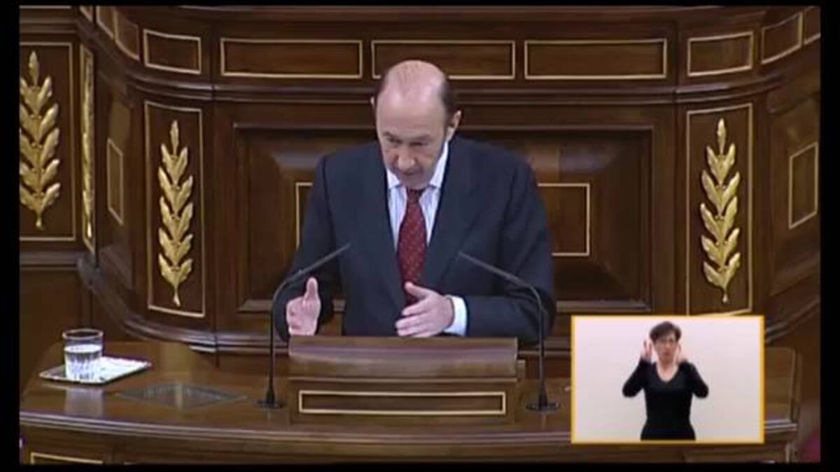 “Señor Rajoy, en qué país vive usted”, una pausa y ha seguido la pregunta, en tono más imperativo, y ya en medio de un estruendoso aplauso de la bancada socialista. “¿Pero en qué país vive usted?" Así ha empezado su intervención el secretario general del PSOE, Alfredo Perez Rubalcaba que le ha leído titulares de prensa extranjero sobre “la vida de los españoles”, a la manera que ha hecho el presidente del Gobierno esta mañana con la lectura de titulares muy positivos para la marcha de este país. “Lo peor está aún por venir”, le ha dicho para comenzar su discurso, o mejor, su parlamento porque Rubalcaba no lee y tampoco se auxilia con ningún papel sobre el atril, que está vacío.