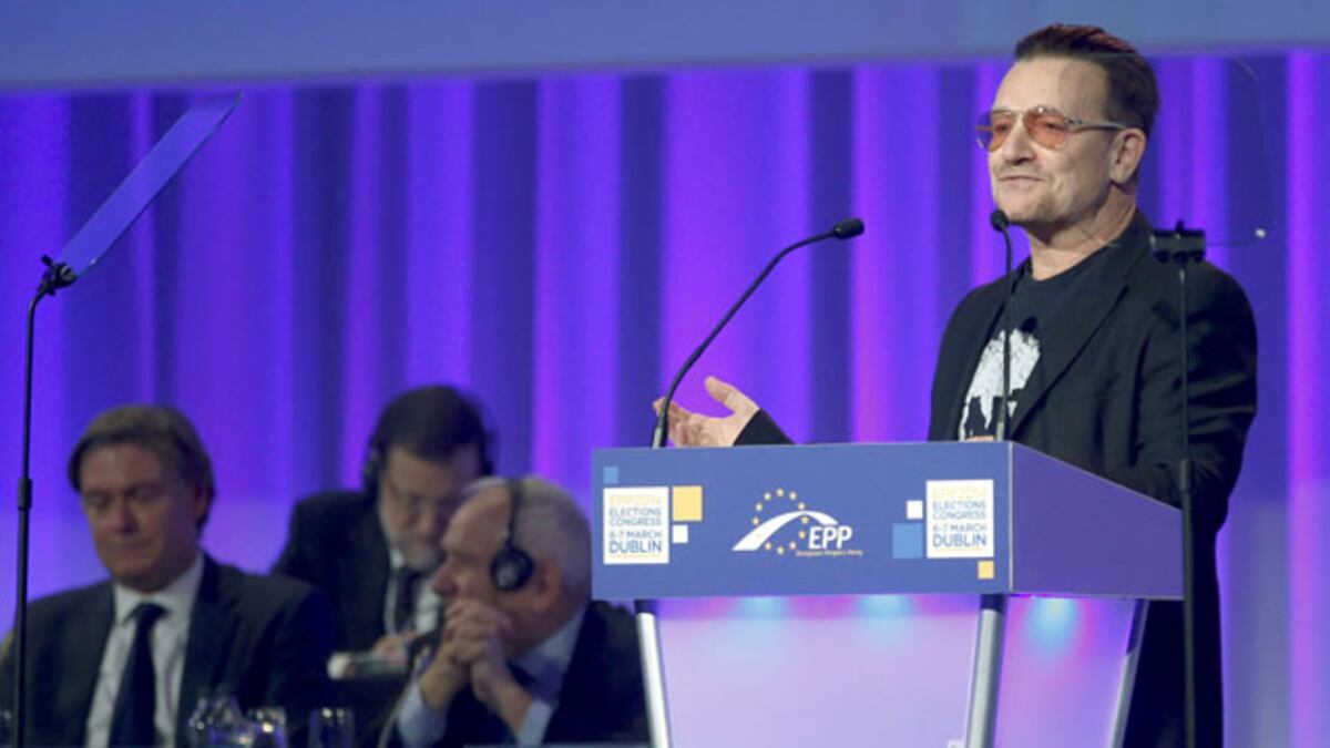 “Rajoy pide liquidez, ¿pero por qué no hay una campaña para consumir productos españoles?” El cantante de U2 hace el discurso estrella y más largo de la cumbre del PPE