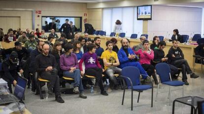 La vista contra los supuestos agresores de los diputados empieza en la Audiencia Nacional La Fiscalía pide para los 20 procesados, uno de ellos huido, cinco años y medio de cárcel "Aquí se juzga el derecho a concentrarse ante nuestros políticos", se defiende un imputado