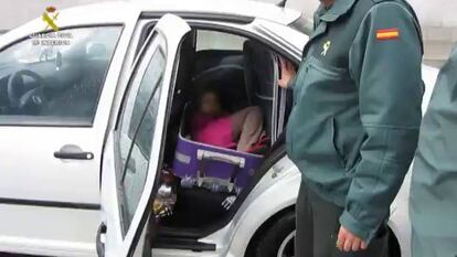 La niña de ocho años estaba en posición fetal cuando la Guardia Civil los detuvo El conductor ha sido arrestado