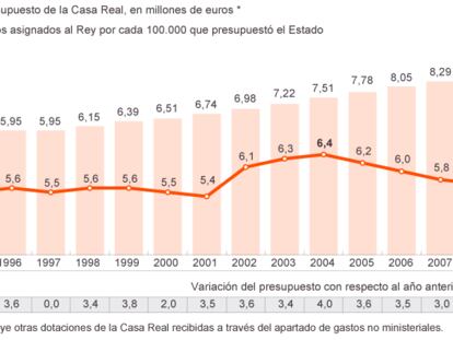 Hace solo cuatro meses, el Rey fijó por primera vez un sueldo a su esposa, doña Sofía, y a la princesa de Asturias, de 63.234 y 49.182 euros, respectivamente, a los que se suman otros 68.505 y 53.382 euros en concepto de gastos de representación. Todas estas cantidades salen de la asignación anual que el Gobierno otorga a la Casa del Rey, que en 2014 asciende a 7,7 millones de euros (un 2,2% menos que en 2013). De esa suma que el Ejecutivo entrega a la institución cada año saldrá también la futura asignación de don Juan Carlos, que decidirá su hijo, Felipe VI, del mismo modo que hasta ahora don Juan Carlos repartía libremente entre los miembros de la familia real un sueldo.