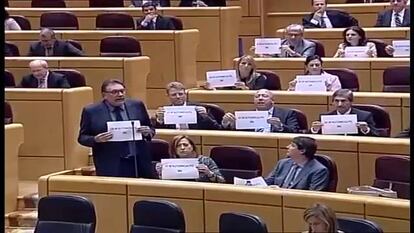 El presidente también ha tenido un debate menos duro en las formas pero sí contundente en el fondo sobre la política penitenciaria con el senador del PNV Jokin BIldarratz, que le insistía en que ahora mismo la llamada "vía Nanclares", para los presos de ETA arrepentidos, está "prácticamente abandonada". Rajoy ha insistido en que el sistema de reinserción funciona y "quien quiere utilizarla, puede utlizarla, pero con requisitos claros: dejar la banda, pedir perdón, colaborar con la justicia".