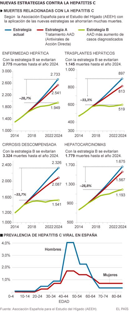 En España la hepatitis C se cobra cada año la vida de 4.000 personas. Se estima que solo un 2,1% de los infectados está recibiendo tratamiento, según el libro blanco de la enfermedad, que alerta: “La carga de la enfermedad en los próximos años será muy elevada”. Evitar trasplantes y muertes depende, por tanto, de lo que se decida ahora: medidas para curar y erradicar.