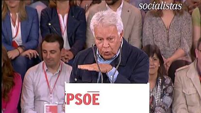 No es frecuente escuchar al expresidente lanzar diatribas contra el Gobierno pero este domingo sí lo ha hecho con pocas florituras pero con mucha contundencia. "Os toca a vosotros recomponer las fallas en el sistema provocadas por la derecha, además de situaros en el espacio entre los inmovilistas y los liquidacionistas", ha dicho en referencia al PP y a Podemos. "Hay que reconstruir lo que nosotros construimos y la derecha ha destruido", ha clamado González para referirse a continuación a la educación, a la sanidad y las políticas sociales. El expresidente no le ha concedido mérito alguno al actual Gobierno por la "frágil y tímida" recuperación económica que encara España. "Ninguno de los factores que lo hacen posible tienen que ver con un Gobierno que no tiene un proyecto para España".