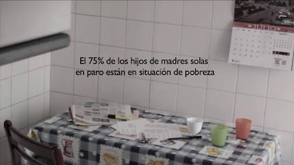 "Tengo dos hijos a mi cargo. Mi situación económica es desastrosa, no tengo trabajo y solo tengo la pensión que me pasa mi marido: 300 euros al mes. Con ese dinero tengo que pagar piso, agua, luz, colegios...", cuenta a la cámara Manuela Macías, de 52 años, residente en Valencia. El testimonio de sus dificultades para sacar adelante a sus hijos forma parte de un informe presentado hoy por Save the Children que concluye que más de la mitad de los niños que viven con sus madres solas están en riesgo de pobreza.