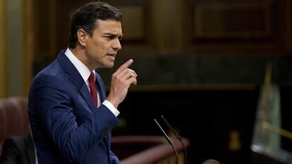 El líder de los socialistas ha presentado sus propuestas para "reparar los daños que le ha causado la crisis" a los ciudadanos y la "insolidaria gestión" del Gobierno de Rajoy. "Usted es el peligro para la economía española", ha expresado Sánchez, y ha citado la reforma laboral "que hace que se agranden los beneficios de unas pocas empresas mientras caen los salarios", el "desprecio por la ciencia y la formación", los "recortes al Estado del Bienestar" y las "subidas masivas de impuestos a la clase media y trabajadora". "Usted ha llevado a España a una grave degradación institucional al estar gobernada por un Presidente acosado por la corrupción", ha defendido el número uno del PSOE.