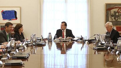El único ministro que no asistió esta mañana al consejo extraordinario fue el de Defensa, Pedro Morenés, debido a que sigue de cerca en Canarias la operación de búsqueda de los tres militares españoles desaparecidos tras la caída al mar del helicóptero en el que viajaban. Rajoy hizo una mención específica a la situación de esos soldados y prometió que se emplearán todos los medios necesarios para encontrarlos.