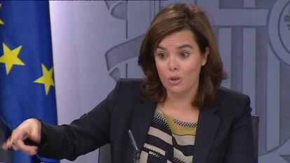 El enfado del Ejecutivo del PP ahora con Mas y su "deriva radical y antisistema", tras haber pactado Presupuestos y cargos al principio de su mandato, llevó este viernes a Sáenz de Santamaría tras el Consejo de Ministros a tildarle de "presidente menguante" y a culparle casi en exclusiva de la complicada situación actual: "Creo que por un cargo no merece vender una comunidad autónoma". Y apostilló que con esta apuesta separatista, que el 27-S no respaldaron en las urnas ni la mitad de los catalanes, "el único que puede sacar algo es el que quiere ser investido a toda costa dejándose muchos pelos en la gatera".