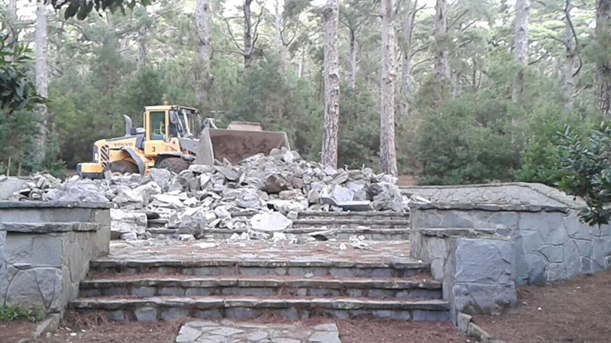 Todo ocurrió muy rápido. Al filo de las siete de la mañana, una pala retroexcavadora acababa con 40 años de exaltación franquista. La máquina derribó el monolito conmemorativo a la reunión previa que mantuvo el general Franco en julio de 1936 antes de partir hacia Tetuán y de ahí, a la Península, donde comandó el golpe de estado que inició la Guerra Civil. El Cabildo de Tenerife cumplía, con 8 años de retraso, la Ley de Memoria Histórica.