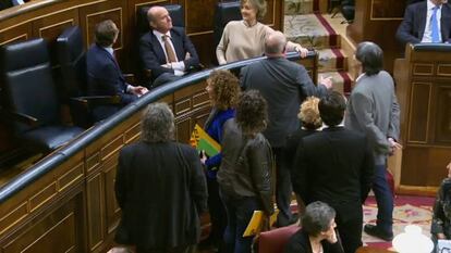 Y, mientras los instrumentos aún suenan al fondo, entra en escena Juan Carlos Monedero, exdirigente y cofundador de Podemos. Con gafas de sol. Bufanda. Y a bordo de su bicicleta, ha acudido al Congreso en calidad de visitante. Él también ha querido entrar al Hemiciclo a sobre dos ruedas. Pero los policías se lo han impedido. Otra anécdota más ocurrida a los ojos de una treintena de expectantes ciudadanos, que no perdían detalle apostados en la acera de enfrente y con el móvil en la mano.