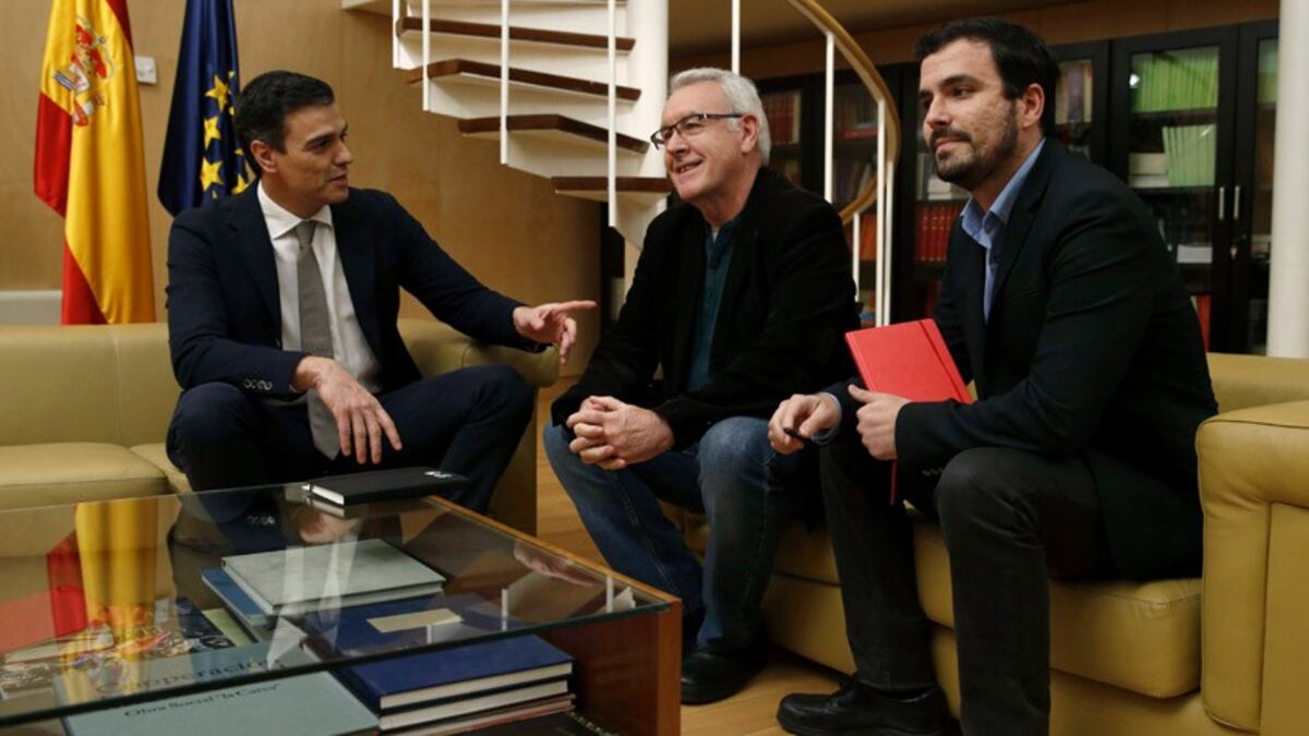 Los dirigentes de izquierdas han expresado, como ya hicieran antes del comienzo de las rondas de consultas, que son favorables a un Gobierno progresista, con el objetivo de desalojar al PP del poder. "Nuestro compromiso es firme para que no gobierne el PP", ha asegurado Garzón. No obstante, su posible apoyo a la investidura de Sánchez lo condicionan al programa electoral, que aún no han discutido con Sánchez. La dirección de IU ha aprobado un documento con 16 medidas que pone sobre la mesa para las negociaciones, que incluyen cuestiones como la derogación de las dos reformas laborales (incluida la del PSOE), del artículo 135 de la Constitución o la constitución de una comisión de investigación parlamentaria sobre la corrupción y la financiación ilegal de los partidos.
