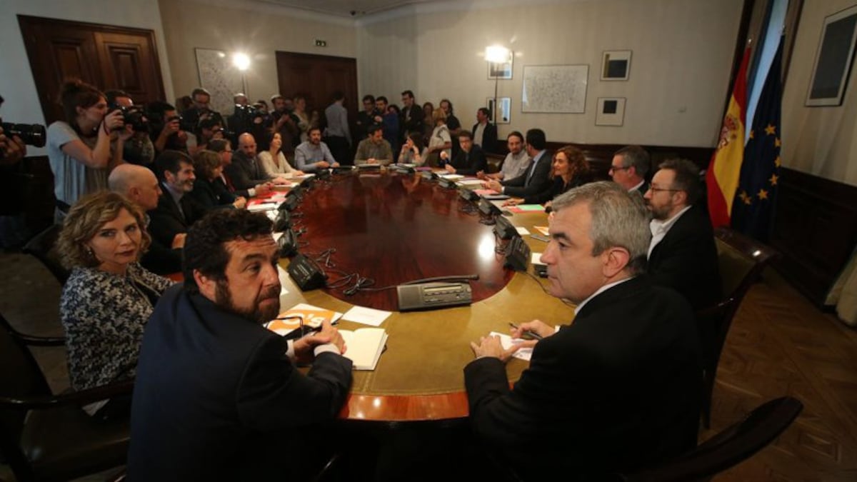 Solo los portavoces de Ciudadanos y del PSOE salieron a dar explicaciones de la reunión. Podemos decidió que será esta mañana, después de que su dirección política y su grupo parlamentario analicen lo sucedido, cuando Pablo Iglesias comparezca ante los medios.