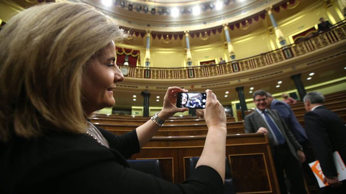 Fátima Báñez se hace un 'selfie' tras el último pleno de la legislatura.Foto: atlas | Vídeo: ULY MARTÍN ATLAS