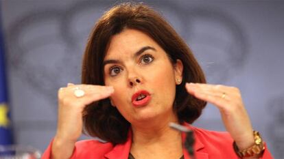La vicepresidenta se agarró a la literalidad de lo que marca la ley del Deporte y el manual de la Federación Española de Fútbol contra el uso de determinados estandartes que puedan incitar a la violencia o el odio y contra la promoción de mensajes políticos, religiosos, racistas o xenófobos. Lo que sí quiso subrayar explícitamente Sáenz de Santamaría fue que el Gobierno entiende que, con este tipo de polémicas, como las de las banderas, los silbidos a los representantes de la monarquía o las presencias y ausencias de determinados dirigentes, se está politizando demasiado el mundo del fútbol.