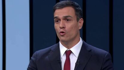 España podría tener un Gobierno "de progreso" que tomara medidas necesarias para millones de ciudadanos, pero "Mariano Rajoy y Pablo Iglesias" lo impidieron al votar "juntos" contra el candidato socialista. Este fue el mensaje esencial que el líder del PSOE, Pedro Sánchez, quiso asentar en el único debate electoral para los comicios del 26 de junio. El político socialista buscó constantemente el cuerpo a cuerpo con Rajoy, e incluso su mirada, acusándole de haber llevado a cabo políticas "retrógradas", fruto de su "revanchismo ideológico", por lo que llamó a "los socialistas" para desbancar del poder a la derecha. "Los extremos han bloqueado el cambio", reiteró en referencia continua al líder del PP y de Podemos. "Yo estoy por los derechos sociales y Pablo Iglesias, por el derecho de autodeterminación en Cataluña, Galicia y el País Vasco", remachó. El reproche de fondo fue para Rajoy, pero a Iglesias le colocó de cooperador necesario para que el líder del PP continúe en La Moncloa.