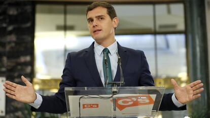 El líder de Ciudadanos ya presentó en octubre este proyecto a sus homólogos del PP y el PSOE. Según su versión, Rajoy quedó en estudiarlo y nunca le dio una respuesta definitiva, y Sánchez no consideró necesario firmar el acuerdo.