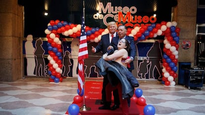 La figura de Trump, vestida con traje azul, camisa blanca y corbata roja y una insignia con las banderas de España y Estados Unidos, estará expuesta en la sala en la que también lo están Barak Obama, John Kennedy y Abraham Lincoln. Dicha estatua empezó a construirse el 9 de noviembre, el día en el que se celebraron las elecciones que le dieron la victoria frente a Hillary Clinton, y se ha terminado esta misma mañana.