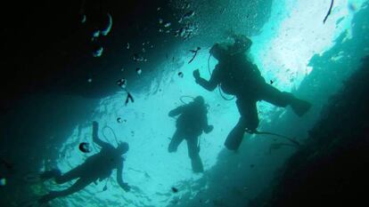 Un equipo de submarinistas graba las ruinas del Faro Picamillo, engullido por el mal tiempo que azotó Galicia