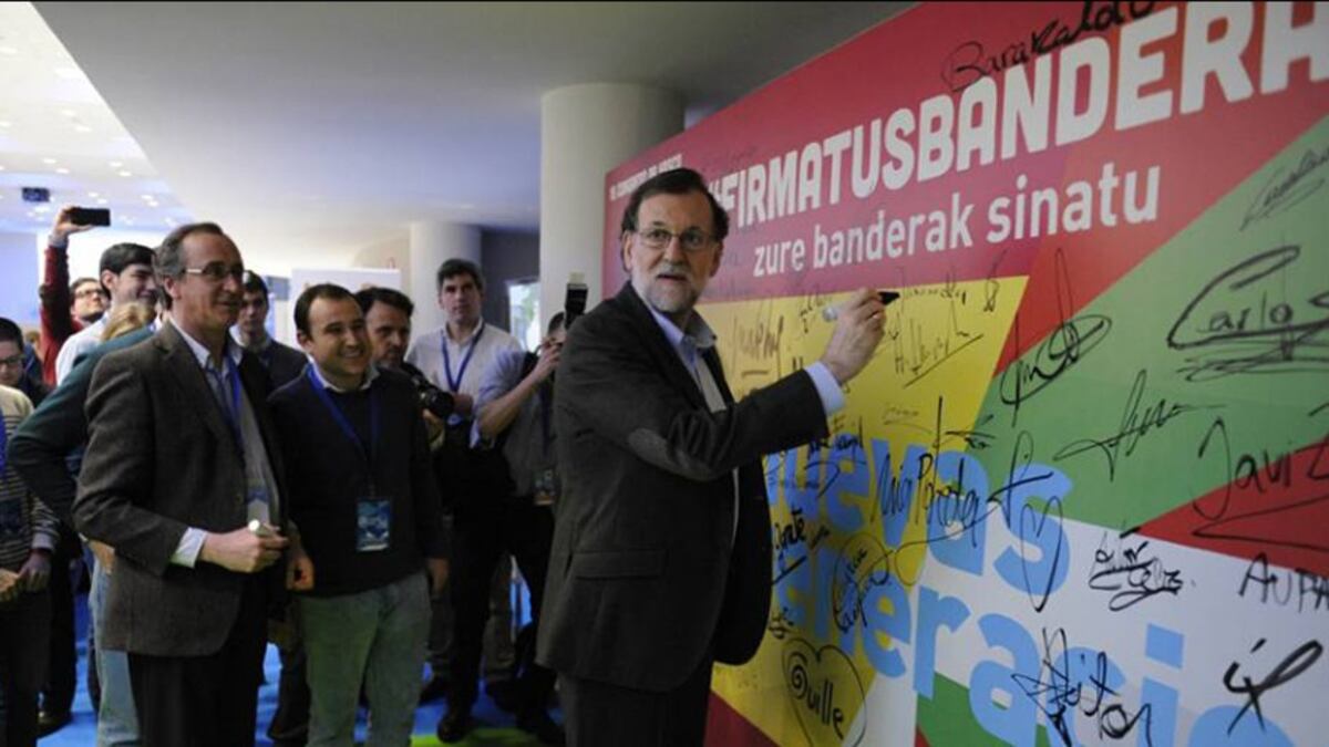 El camino de ETA hacia su liquidación ya está marcado. El presidente del Gobierno, Mariano Rajoy ha dicho en la clausura del Congreso del PP vasco que la banda terrorista tiene que disolverse y desaparecer de las vidas de los vascos y de los españoles, sin esperar ningún tipo de contraprestaciones. El presidente ha sugerido que es la última oportunidad de la banda y que no puede esperar nada, tampoco de Francia: "ETA ha hecho su enésimo anuncio, ha dicho que se va a desarmar, me parece bien, y de paso que se disuelva y que pongan fin a esto de una vez. Ya saben que no habrá nada a cambio de nada, porque nada puede haber". Una posición que también ha manifestado el PNV.