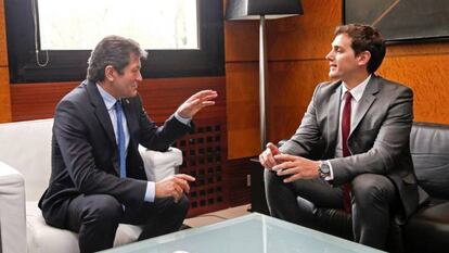"Como no somos extraterrestres, hemos hablado de la situación política en general, de los presupuestos generales del Estado y de la estabilidad política", ha dicho Rivera en una rueda de prensa a la salida de la reunión. "Le he manifestado nuestra voluntad de cooperar puntualmente en aquellos temas en los que nos necesite en la región, porque nos parece bueno que al margen de discrepancias Asturias tenga unos presupuestos, que se modifique la Ley de sucesiones o la Ley electoral", ha añadido sobre el papel de sus tres diputados autonómicos en apoyo de la alianza que forman PSOE e IU. "Respecto a Murcia, veremos si hay un espacio común para sacar del gobierno a un presidente imputado por cuatro delitos", ha seguido antes de pedirle al PSOE "un esfuerzo que permita que salgan [adelante]" las cuentas públicas de 2017.