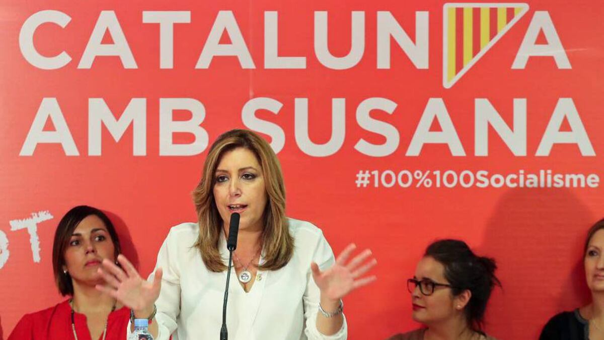 Díaz cerró este viernes en la sede del PSC en Mataró (Barcelona), ante un centenar de personas, su presencia en Cataluña en la campaña de las primarias del 21 de mayo, en la que ha intentado reforzar su mensaje ante la militancia, después de que su candidatura recogiera 974 avales de militantes del PSC frente a los 6.058 de Pedro Sánchez. Con todo, Díaz aseguró que su candidatura “va a más” en Cataluña. En su intervención en Mataró, la presidenta andaluza insistió en que no iba a entrar en una “batalla de subastas para arañar un puñado de votos”, en referencia al ex secretario general, y afirmó que ella dice lo mismo ahora que decía hace un año o dirá el año que viene, esté en Euskadi, Cataluña o Madrid.