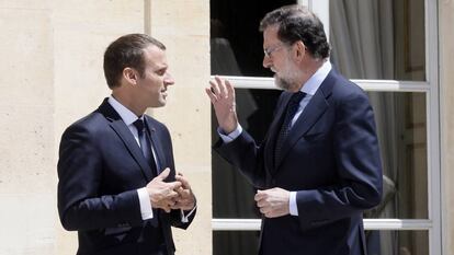 El presidente francés, Emmanuel Macron, solemnizó este viernes en París, tras un almuerzo privado con el presidente español, Mariano Rajoy, una posición firme y clara a favor de la unidad de España ante el reto soberanista que se ha desbocado en Cataluña. Fue una declaración corta y contundente tras una introducción con la que intentó especificar que ese asunto interno concernía únicamente a España. Pero Macron sentenció su primera posición sobre el problema ya como nuevo presidente de Francia: "Conozco un socio y amigo que España en su conjunto, toda entera, y tengo un amigo e interlocutor que es Rajoy, que está aquí a mi lado y el resto no me concierne".